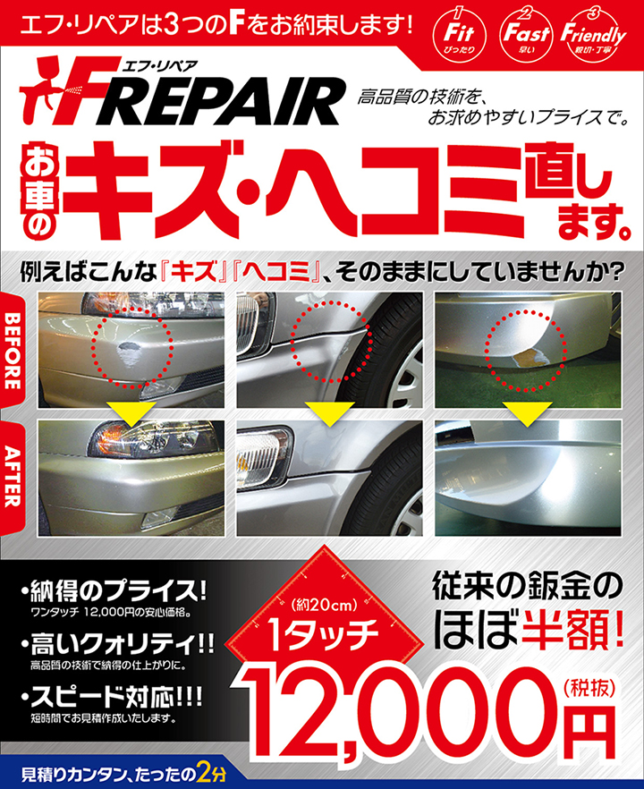 高品質の技術をお求めやすいプライスで、お車のキズ・ヘコミ直します!